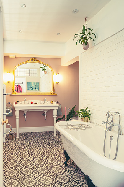 The bespoke front door was made to measure with the installation of an antique leaded coat of arms glass panel. Ironmongery also included a hand-made Arts & Crafts copper letterbox and matching vintage copper door knocker. This attention to detail has resulted in a wonderful blend of historic and contemporary styles, the ultimate urban cottage.